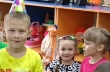 Сегодня у нас день рождения Раяза. Дети окружили Раяза и спели песню "Каравай":