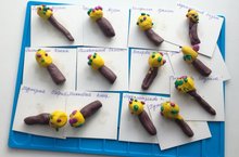 Учить детей лепить предмет, состоящий из двух частей: шарика и палочки; соединять части, плотно прижимая их друг к другу. Упражнять в раскатывании пластилина прямыми и круговыми движениями ладоней.