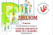 Безнең тәрбияләнүчеләргә Республика конкурсында "Эти белән бергә" 3 урын өчен Диплом