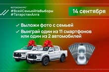 14 сентября, в день проведения выборов Раиса Татарстана и муниципальных депутатов пройдет фотоконкурс #ТатарстанАлга #ВсейСемьейНаВыборы. По его итогам можно выиграть автомобиль или смартфон