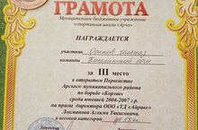 Валиахметов А. -ученик 7 класса- занял 3 место в Первенстве Арского муниципального района по борьбе "Корэш" среди юношей 2002-2003 г.р. в весовой категории до 90 кг.