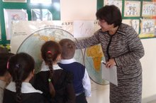 Башлангыч сыйныф укучылары география укытучысы Закирова Н.Г. ярдәмендә карта уку серләренә өйрәнә.