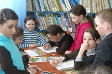 Китапханәдә шагыйребез Г. Тукайның тууына 130 ел тулуга багышланган күргәзмә оештырылды. Укучылар әсәрләренә рәсемнәр ясадылар.