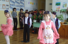 3 нче класс укучылары: Мортазина Динара, Рахимова Руфия , Сәлимов Рүзәл, Закиров Инсаф татар халык биюен бик матур башкардылар.