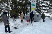 Мәктәбебезнең волонтерлар отряды авылыбыздагы һәйкәл яны территориясен кардан чистарттылар.