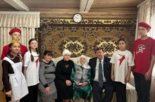 Бүген мәктәбебезнең актив укучылары белән Якты көн авылында яшәүче Рауза апайга Бөек җиңүнең 80 еллыгы уңаеннан медаль тапшыруда катнаштык.