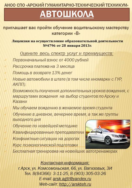 Обучение водительскому мастерству