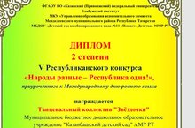Котлыйбыз! 03.04.2025 Арча шәһәренең сәнгать мәктәбендә узган Бөек Җиңүнең 80 еллыгына, Ватанны саклаучылар елына багышланган "Арча йолдызлары" исемле конкурс-фестивалендэ безнең балалар бакчасыннан "Катюша" дигән бию белән катнашып, кызларыбыз , I дэрэжэдэге дипломант иялэре булдылар. Котлыйбыз!!!
