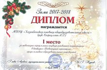 Мы заняли I место в конкурсе "Новогодний серпантин" за новогоднее оформление подведомственной территории среди сельских образовательных учреждений.