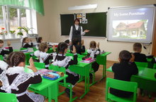 Республиканский семинар 14.10.2015 В рамках курса повышения квалификации учителей начальных классов в нашей школе был проведен республиканский семинар по теме "Методологические и педагогические аспекты внедрения ФГОС в начальном и общем образовании".Учительница английского языка Загриева Гульназ Мансуровна показала открытый урок во 2 классе по теме "Мой дом.Предметы мебели"