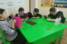 5-6 сыйныфта укучы кызлар технология дәресендә фетрдан брошка ясадылар.