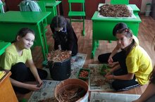 14.09.2023 Укучылар хезмәт дәресендә орлык суганын язга утырту өчен хәзерлиләр.