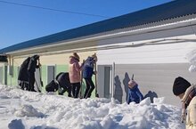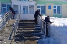 Укучылар хезмәт дәресләрендә мәктәпнең тирә-ягын кардан чистарталар.