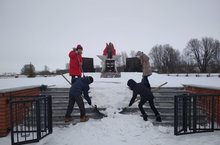 Мәктәпнең тимурчылары һәйкәл тирәсен кардан чистартты. 02.12.2020