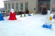 Мәктәпкә кергәндә һәркемне Кыш бабай һәм Кар кызы, әкият геройлары каршы ала. Рәхим итегез!
