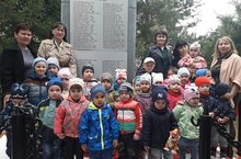 Авылыбызда урнашкан һәйкәл янында балалар эшчәнлеге: "Җиңү көне" нә багышланган шигырьләр сөйләү, җырлар җырлау. 08.05.2018