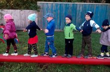 Физкультура на свежем воздухе. Ходьба по бревну, свободно балансируя руками. 12.09.2017