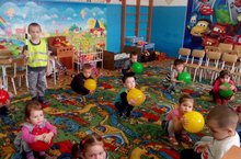 Танец "Веселый светофор"Закрепление знаний при танце с разноцветными мячами. 12.04.2017