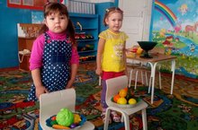 Изучаем русский язык (средняя группа). Игра "Найти по цвету" (на столе цветные кружочки и овощи. Найти по цвету своего кружочка овощ. 14.03.2017