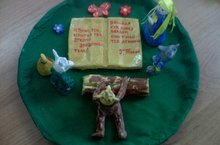 Сабирова Эльвина (кечкенәләр төркеме узенең әти-әнисе белән матур итеп тозлы камырдан Тукай әкиятләрен матур итеп сүрәтләде)