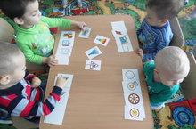 Средняя группа. Дети рассматривают картинки и называют, какую форму имеет предмет.