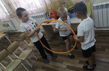 Физическая культура ОВД Лазанье в обруч, который держат партнёры, правым и левым боком, стараясь не задеть верхний край обода 11.10.2023