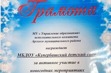 Грамота МУ "Управления образования" за активное участие в новогодних мероприятиях 24.01.2022