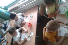 Мәктәпкә әзерлек төркеме белән көз темасына рәсем ясау. Рәсемне краска белән пөхтә итеп буяу.
