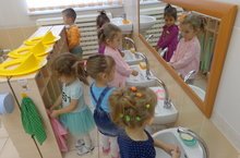 Балаларны юыну бүлмәсендәге предметлар (сабын, сөлге, кран, су) белән таныштыру, функциональ билгеләнешләре турындагы күзаллауларын ачыклау.