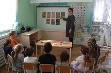 Охрана жизни и здоровья детей – одна из главных задач детского сада и семьи. Наш детский сад принял участие в проведении Всероссийского открытого урока «Основы безопасности жизнедеятельности». К нам в гости пришел сотрудник МЧС Саттаров Ленар Габдылхаевич – родитель воспитанника Саттарова Азамата. Он рассказал о чрезвычайных ситуациях. Показал как правильно пользоваться огнетушителем . Объяснил детям как нужно себя вести в таких ситуациях.