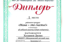 Яңа Кенәр балалар иҗаты йорты оештырган "Мама - это счастье" район конкурсында катнашып Хөсәйнов Д.Р. 1 нче урын яулады. Җитәкчесе Җәләлиева А.Г.