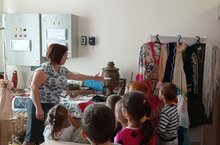 Бүген "Туган телем сагында" атналыгы кысаларында балаларны бакчабызда эшләп килүче милли почмак - музейдагы милли ядкәрләр, тарихи экспонатлар белән якыннанрак таныштырдык. Әлеге музей балаларыбызның әти-әниләре, әби-бабайлары ярдәмендә һәрвакыт тулыландырылып тора.
