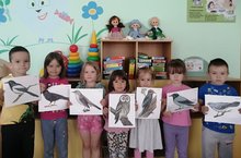 Буген балалар белән кошлар турында сөйләштек. Балаларга кошларнын файдасы турында аңлатылды, кошлар турында кайгыртырга, өлкәннәр ярдәмендә җимлекләр куярга, кош оялары ясарга кирәклеге, кечкенә дусларыбызга карата мәрхәмәтле, шәфкатьле булырга кирәклеге турында әйтелде. Балалар белән кошлар турында табышмаклар чиштек, әкиятләр укыдык.