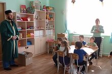 Безнең балалар бакчасына авылыбыз мәчетенең мулласы Идрис хәзрәт килде. Ул балаларга ураза бәйрәме турында сөйләде. Дин, мәчет турында сораулар биреп һәр балага бүләк, күчтәнәч өләште. Балаларыбыз миһербанлы, шәфкатьле булып үссеннәр дигән теләктә калып, киләсе елга кадәр саубуллашты. Аллаһның рәхмәте яусын!