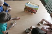 Балалар белән язгы кыр эшләре турында әңгәмә үткәрү. Рәсемнәр карау. Бөртекле культуралар (бодай, арыш, арпа, солы, борчак) белән танышу, аларны тотып карау, чагыштыру. Әһәмиятләрен ачыклау.