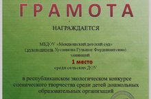Наш детский сад принял участие в республиканском экологическом конкурсе сценического творчества среди детей ДОО и был награжден грамотой за 1 место.