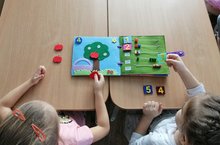 Уртанчылар төркеме балалары математикага багышланган фетрдан тегелгән китап белән таныштылар. 1 дән 5кә кадәрге саннар белән төрле биремнәрне үтәделәр.