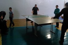 Вот так весело проходит в нашей школе перемена. Дети играют вместе с учителями в настольный теннис.