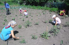 Продолжается работа на пришкольном участке: учащиеся пропалывают растения, поливают их водой, рыхлят землю.