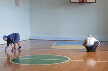 Школа готовится к приему детей 1 сентября. Идет ремонт, покраска.
