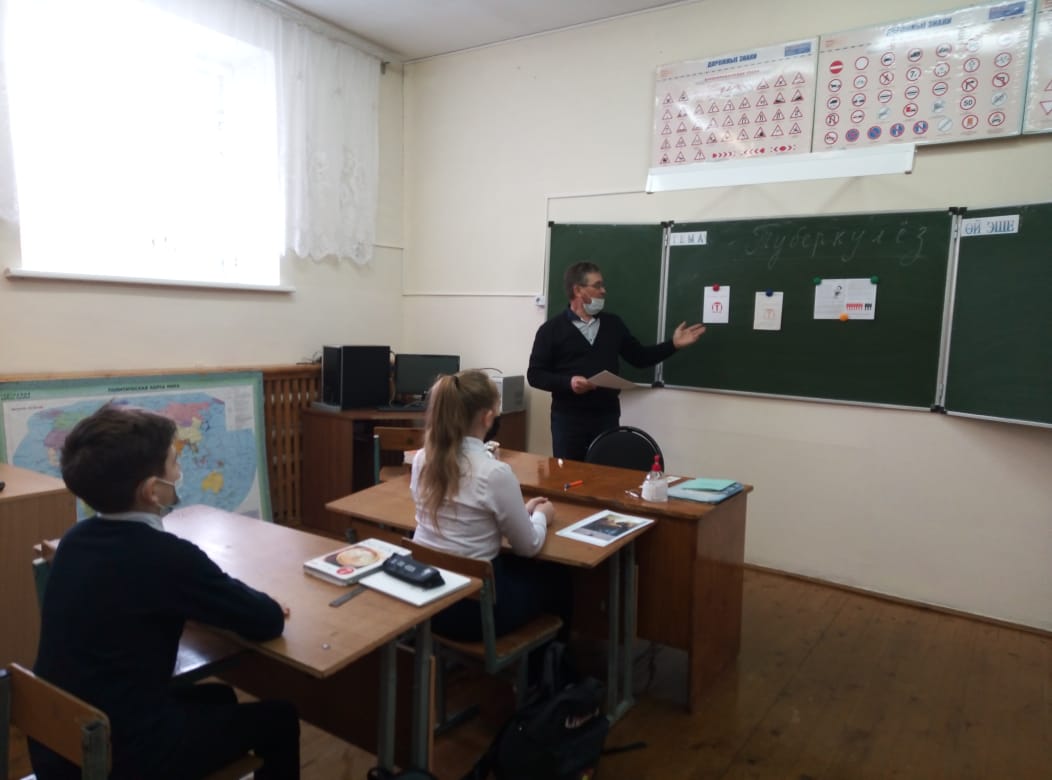 Бөтендөнья туберкулёзга каршы көрәш көне уңаеннан укучыларга әлеге авыру турында төшенчә бирү, саклану чаралары белән таныштыру, сәламәт тормыш рәвешен пропагандалау максатыннан 7 нче класс укучылары белән тәрбия сәгате үткәрелде.Укучыларга әлеге авыруга китерүче факторлар аталды. Туберкулез – төчкерү, йөткерү һәм башка юллар белән йога торган чир. Туклану сыйфаты санга сукмаган, токсик продуктлар кулланган, авырулар, стресс, депрессия кичергән кешеләргә куркыныч яный.