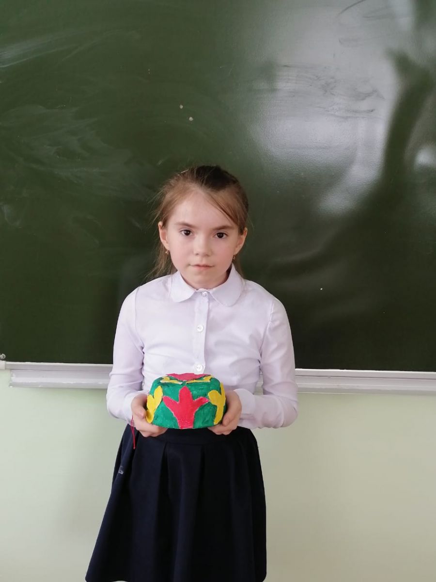 Татарстан Республикасында туган телләр һәм халыклар бердәмлеге елы уңаеннан башлангыч класс укучылары технология дәресләрендә милли бизәкләр кулланып төрле эшләнмәләр эшлиләр.Бу эшләргә әти-әниләр дә тартыла. 2нче класс укучысы Шәмсиева Язилә әнисе белән тозлы камырдан түбәтәй ясады. -