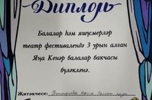 Мәктәпкәхәзерлек төркемен һәм тәрбиячеләре Фәттериева Н.С.ны "Балалар һәм яшүсмерләр театр фестивале"ндә 3 нче урын алулары белән котлыйбыз!