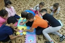 Воспитанники подготовительной группы с удовольствием занимаются коврик-пазлами в режимных моментах.