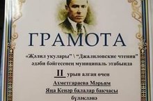 Безнен бакча балалары республика, район, бакчабыз күлэмендэ үткэрелгэн бәйгелэрдэ актив катнашалар һэм призлы урыннарга лаек булалар. 2нче кечкенәләр төркемендэ тәрбияләнүче кызыбыз "Җәлил укулары" бәйгесендә, Муса Җәлилнең шигырен яттан сөйләп, 2 нче урын яулады.