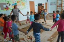 Кече яшьтәгеләрнең икенче төркеме балалары күбәләк-чәчкә уены вакытында.