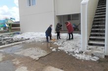 Бүген бакчабызда язгы өмәләр башланып китте. Без тирә- юньдә өелеп торган кар өемнәрен тараттык. Күмәк көч белән башкарылган эш нәтиҗәле булды, кар өемнәре бик тиз эреп юкка чыкты.