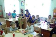Уртанчылар группасы балалары әвәләү белем эшчәнлегендә тәрбиячеләре Хамзина Р.Ю. белән.