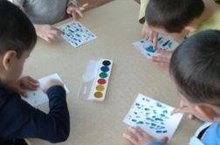 Икенче кечкенәләр тәркеме балалары тәрбиячеләре Гарифҗанова Г.Р. җитәкчелегендә рәсем ясауның традицион булмаган технологиясен үзләштерәләр.