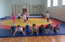 Икенче кечкенәләр һәм уртнчылар төркеме физик культура залында күнегүләр эшлиләр. Тәрбиячеләре Рилә Рәисовна аларны сәламәт яшәү рәвешенә өйрәтә. Сәламәтлекнең кеше өчен иң мөһим нәрсә булуын балаларга гел төшендереп тора.
